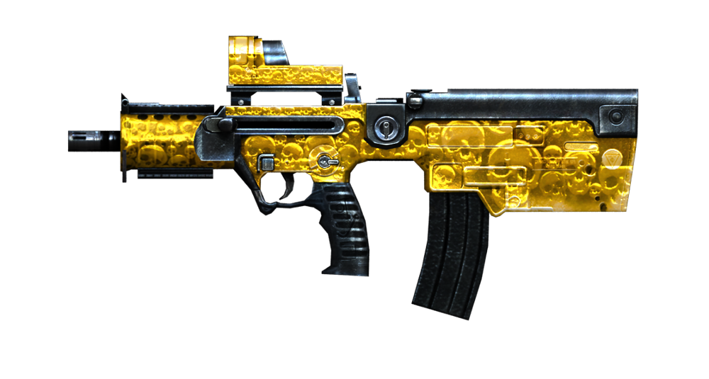 Компактный вариант винтовки TAR-21, украшенный изображениями золотых черепов.