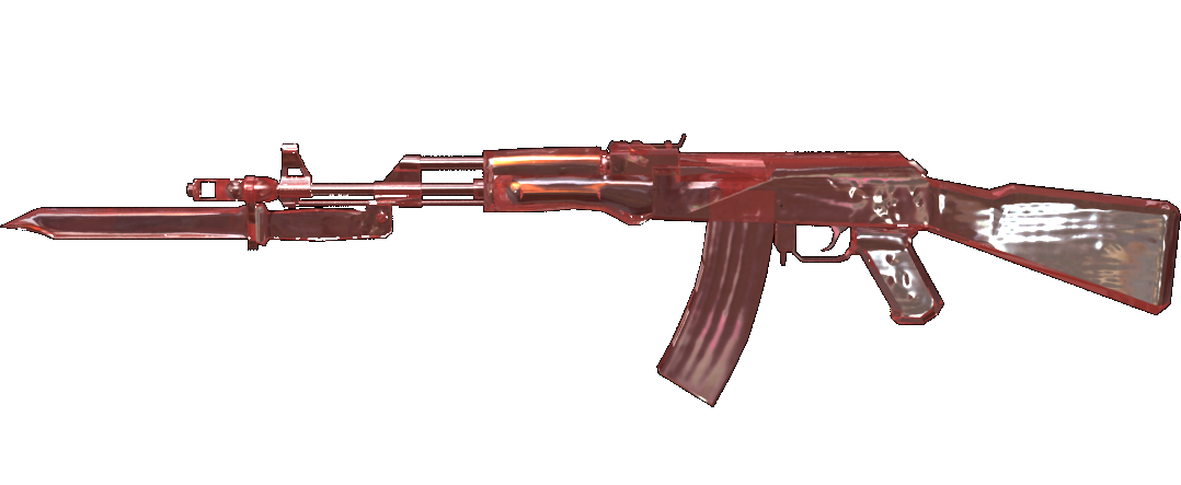 Автомат АК-47 с установленным штык-ножом, выполненный в красном цвете.