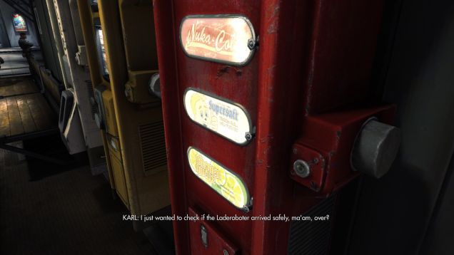 По мере продвижения по замку вы наткнётесь на ничем не примечательный автомат с газировкой, но если подойти поближе и всмотреться в перечень товаров данного автомата, можно увидеть небезызвестную Nuka-Cola, которая является отсылкой к Fallout: