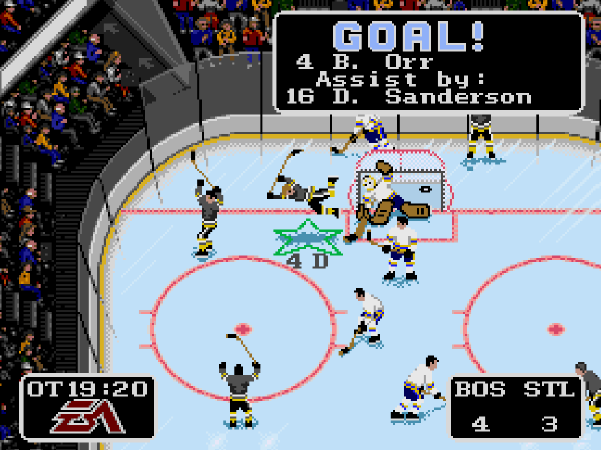 Это была одна из первых игр, в которой решили уделить большее внимание толпе болельщиков. Как вы можете заметить, это всего лишь 6 разных видов людей, «скопированных и вставленных» до бесконечности, но для 93 года это довольно хорошее начало. Они были анимированы с разной скоростью, чтобы сымитировать возбуждение толпы во время попадания в штангу, к примеру, или падения одного из игроков.