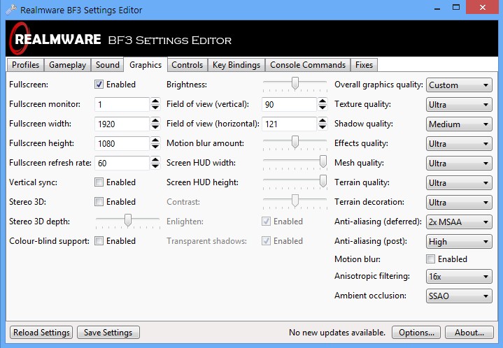 Итак, советую вам скачать Realmware BF3 Settings Editor: http://battlefield.r...ditor/downloads