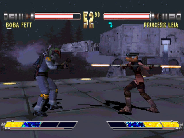 Еще одна довольно необычная полоса, которая тоже указывает на креативность тех годов консольных. Джедаи сражаются на мечах, и именно мечи и являются их полоской жизни. И это понятно — единственное сильное оружие в руках при исчезновении явно приведет к смерти. И разработчики, зная это, не стали делать обычные хелсбары и показали свое воображение. Молодцы.