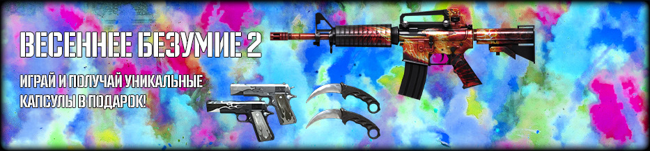 Предлагаем вам принять участие во второй части игрового события «Весеннее безумие», которое пройдет с 10 по 12 апреля включительно, и получить за это в награду специальные капсулы. Главный приз в них — M4A1 Phoenix, а помимо этого они содержит множество разнообразного оружия и полезных предметов на срок до 7 дней.