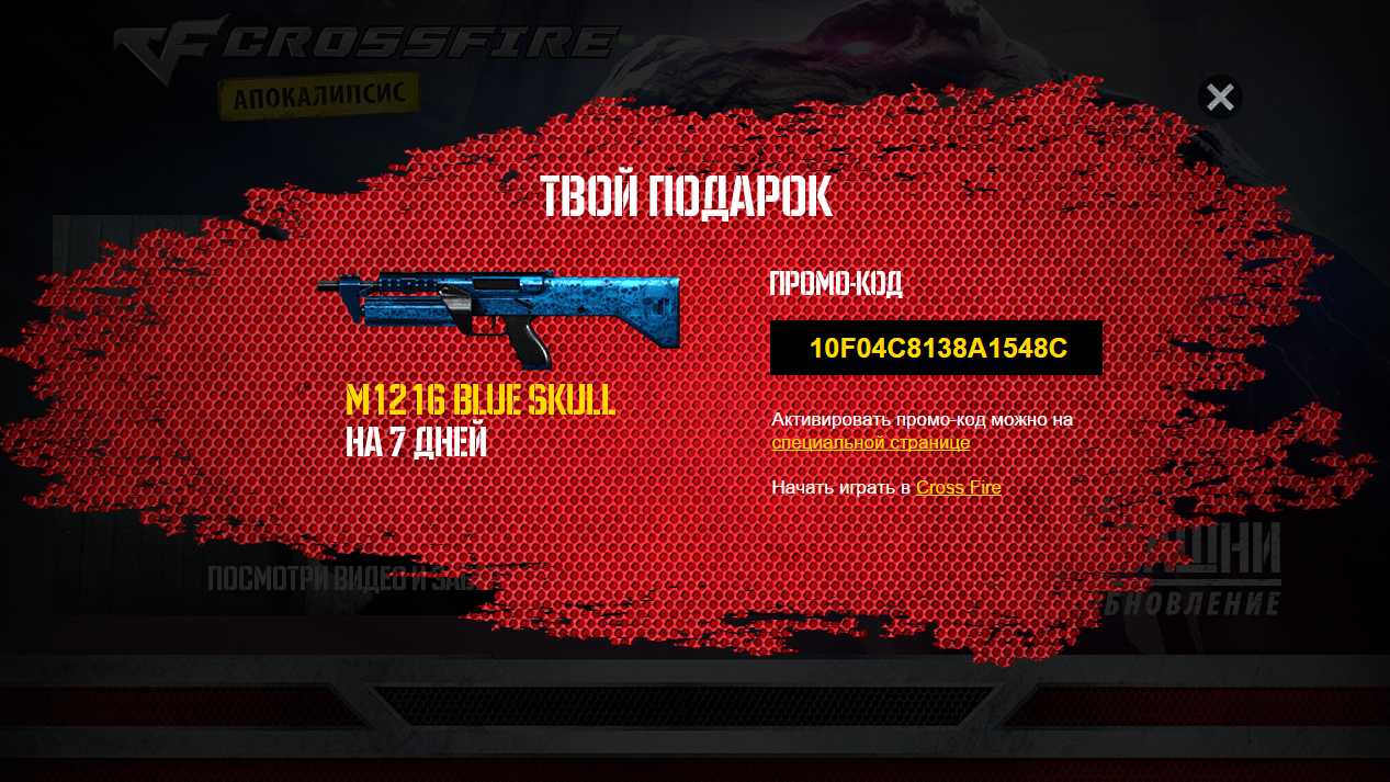 Промо-код для CrossFire на оружие M1216 Blue skull!